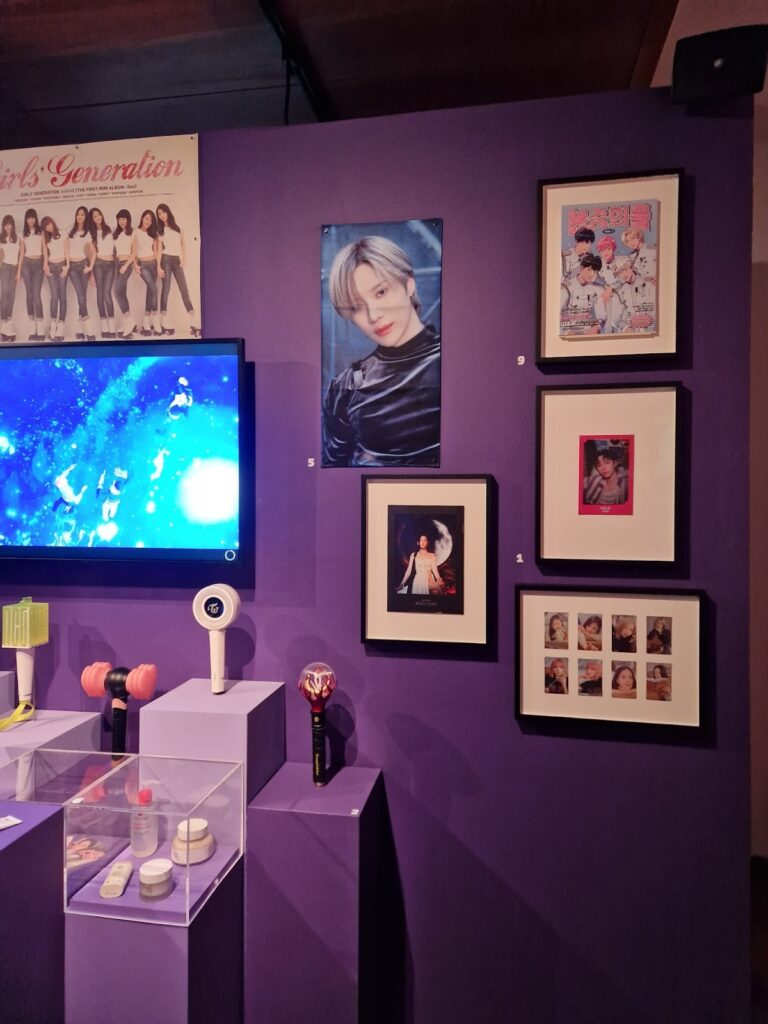 Enfin, dans la troisième salle, vous verrez comment à la fin du XX ème siècle, la Corée du Sud a su se reconstruire et vivre une rapide croissance. Souvent perçue au départ comme une réponse à la crise économique asiatique de 1997, la politique de la Hallyu est devenue un véritable triomphe culturel. La K-beauty n’est pas seulement devenue une industrie cosmétique, mais devient une culture visuelle portée par de nombreuses célébrités. Aujourd’hui, la base traditionnelle et le patrimoine coréen restent un socle aux critères de beauté qui sont centraux dans la société sud-coréenne. L’industrie musicale est d’ailleurs portée par toute cette histoire, faisant référence tant à l’époque Joseon que l’influence du monde entier.